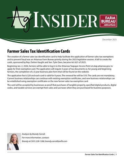 December 2025 Ag Insider | Farmer Sales Tax Identification Cards