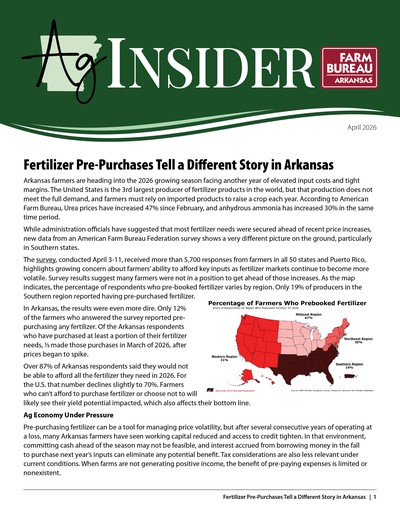 Arkansas Farm Bureau's team of commodity and agricultural economics experts will frequently provide data, analysis and commentary on the impacts of natural disasters, weather, pending state and federal legislation and more. These reports and graphics will be saved and organized here by year.